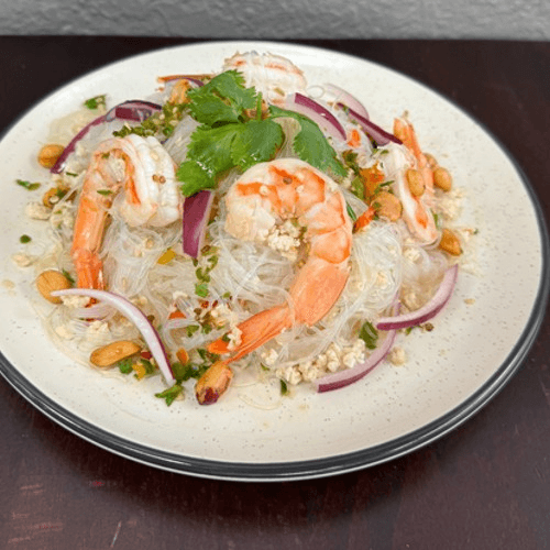 Succulent shrimp atop a bed of mixed greens, tossed in a vibrant Thai-inspired dressing with a perfect balance of spicy and sour flavors.
