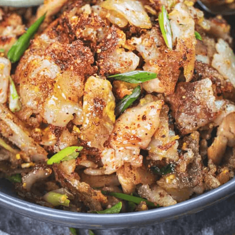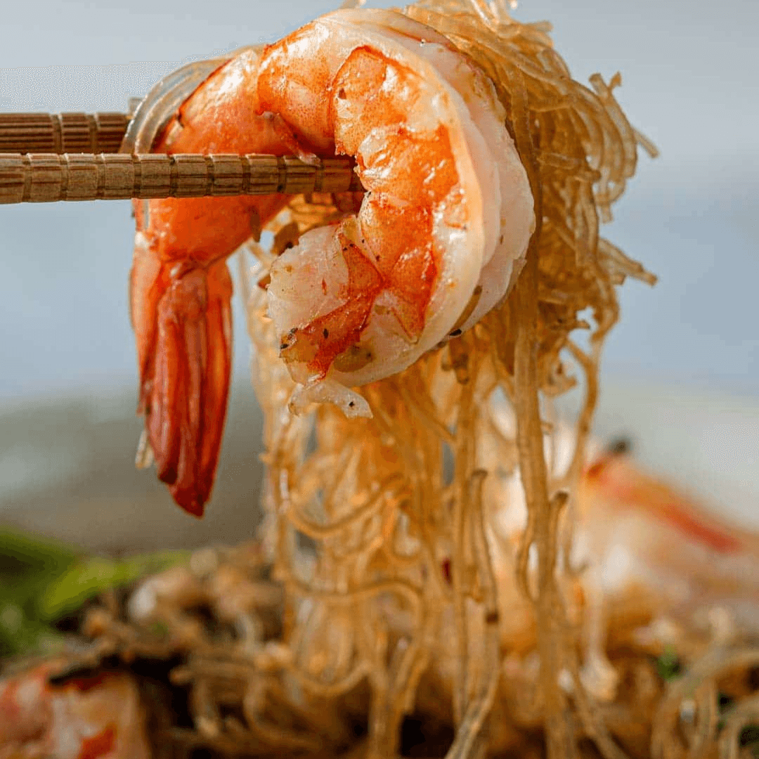 Glass noodles stir-fried with shrimp, garlic, ginger, celery, scallions, and savory seasoning sauce. Served with a tangy seafood sauce.