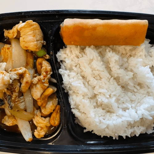 Choice of proteins cooked in a spicy basil sauce, served over fragrant jasmine rice, creating a harmonious balance of heat and aroma.