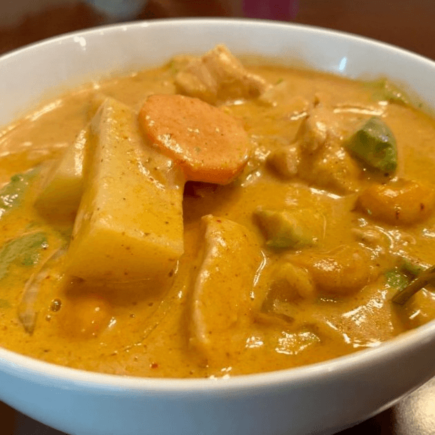 A rich curry blend simmered in creamy coconut milk with ground chicken, infused with a bold, spicy kick.