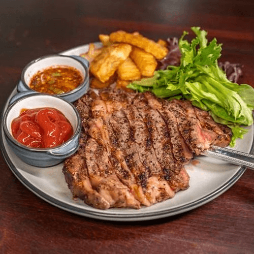 sukiyaki stir-fried with a medley of fresh mixed vegetables, all enveloped in a rich and savory Thai-style sauce.