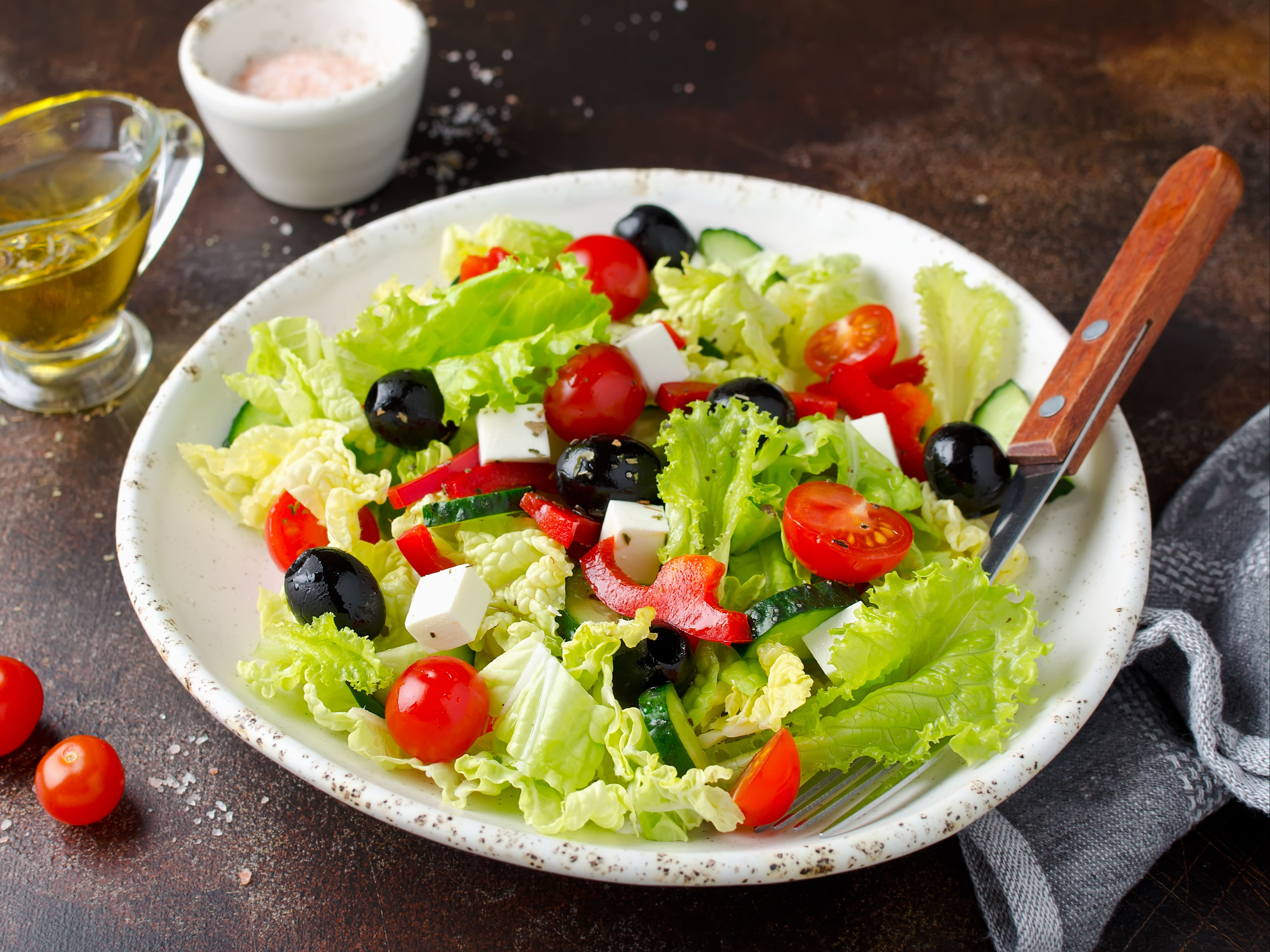 GREEK SALAD, RICE, PITA BREAD AND 2 SKEWERS