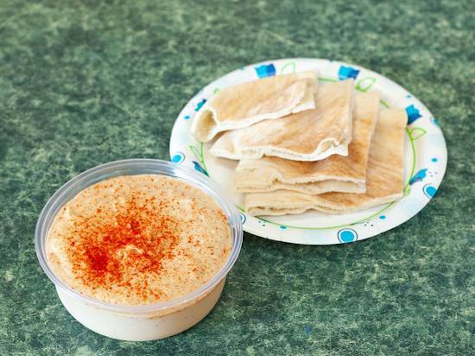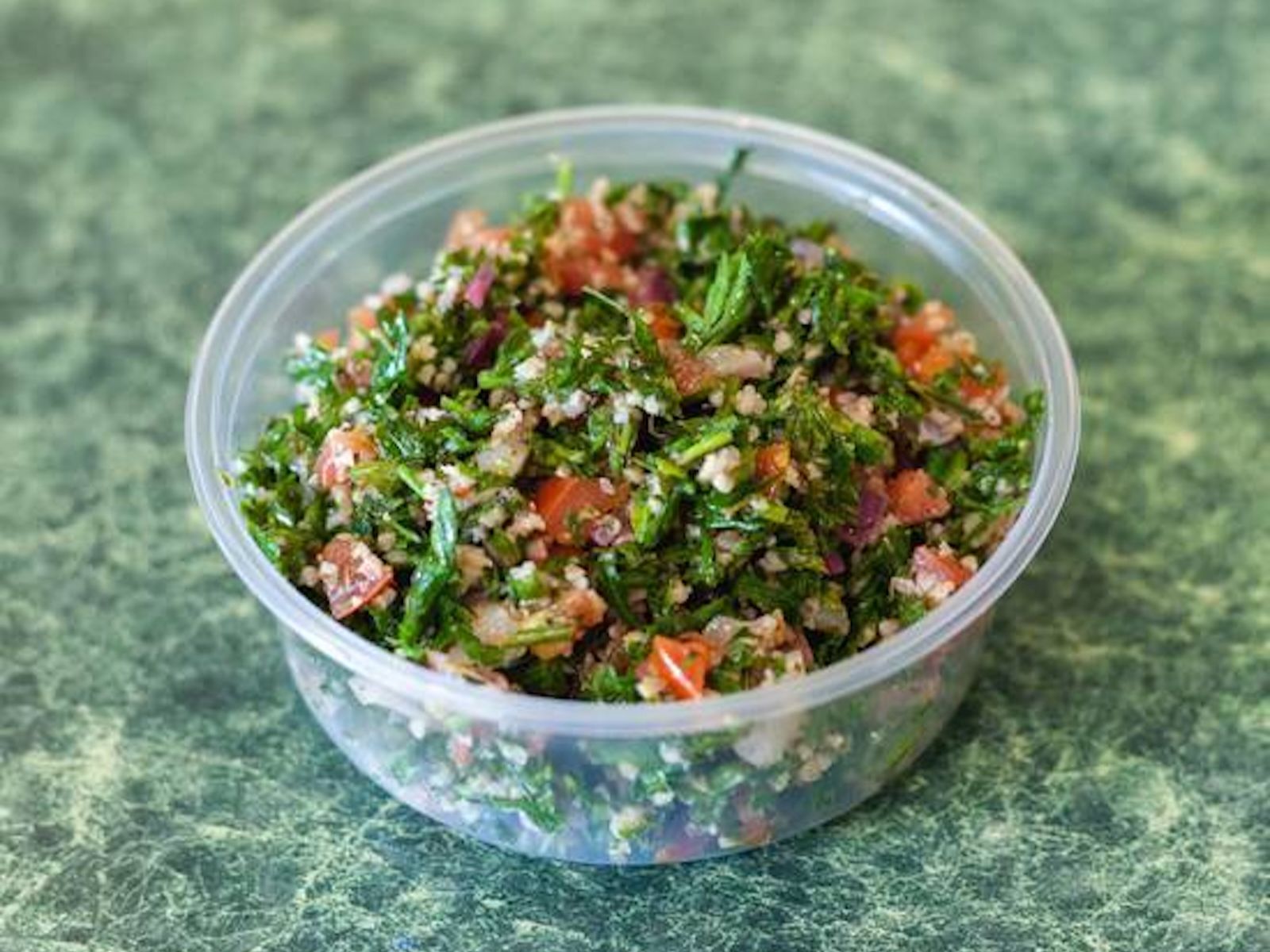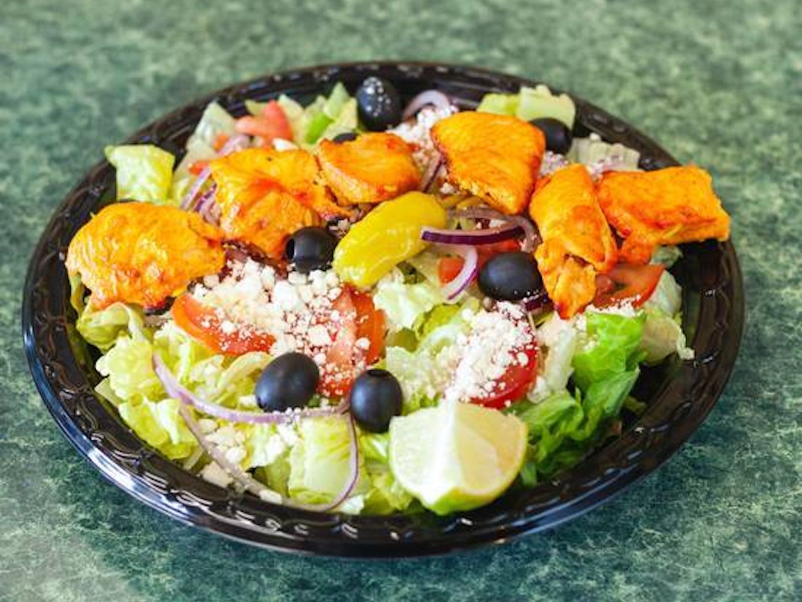 Includes hummus, four pieces of falafel, tabbouleh, tahini sauce, and fresh Greek salad.